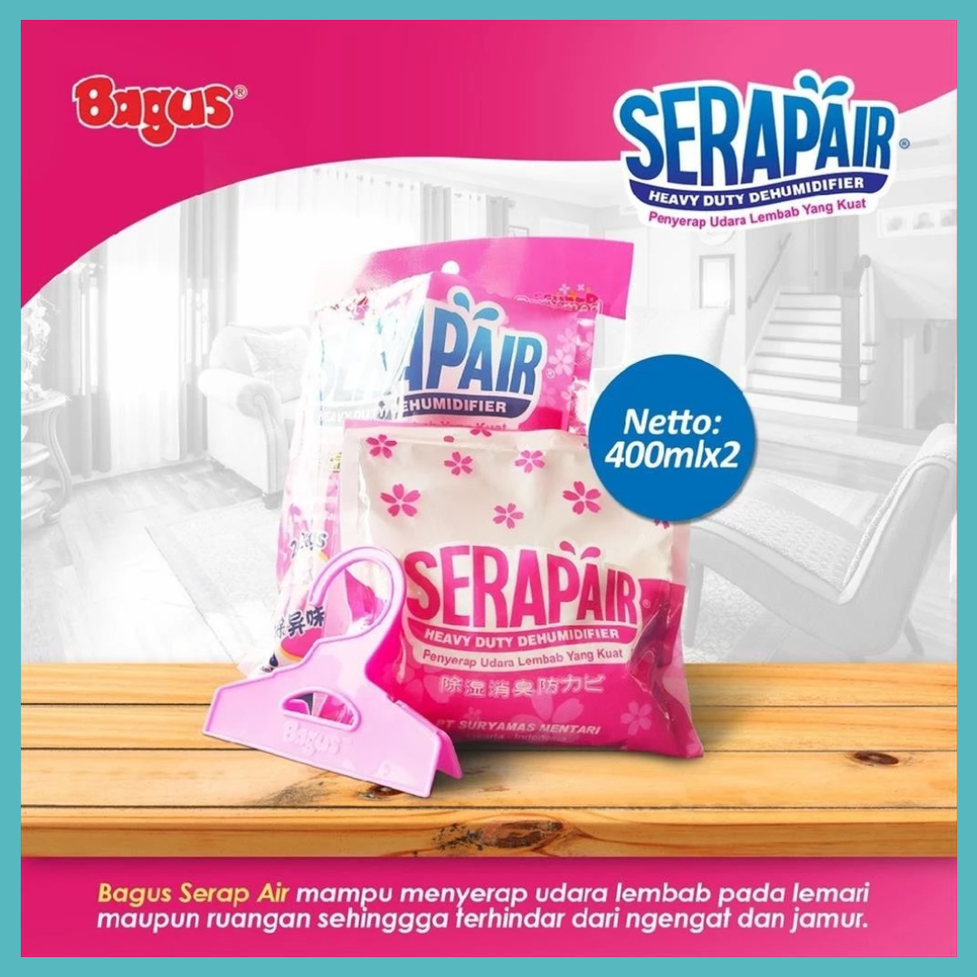 Kelembapan udara dapat merusak benda, terutama untuk benda seperti kamera dan kulit. Kelembaban udara yang ideal adalah sekitar 40%, namun kelembaban di Indonesia didapati lebih tinggi. Tingginya kelembapan udara dapat pula meningkatkan timbulnya bau tidak sedap, contohnya adalah pada lemari sepatu atau barang. Bagus Serap Air menjawab masalah ini dengan efisien dan dengan harga yang terjangkau. Serap air menyerap kelembaban diudara dan mudah dipakai. Tersedia dalam kemasan sekali pakai dan isi ulang.