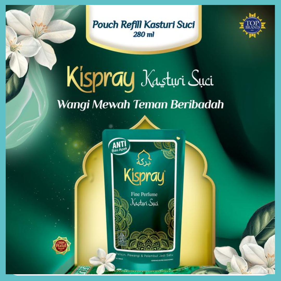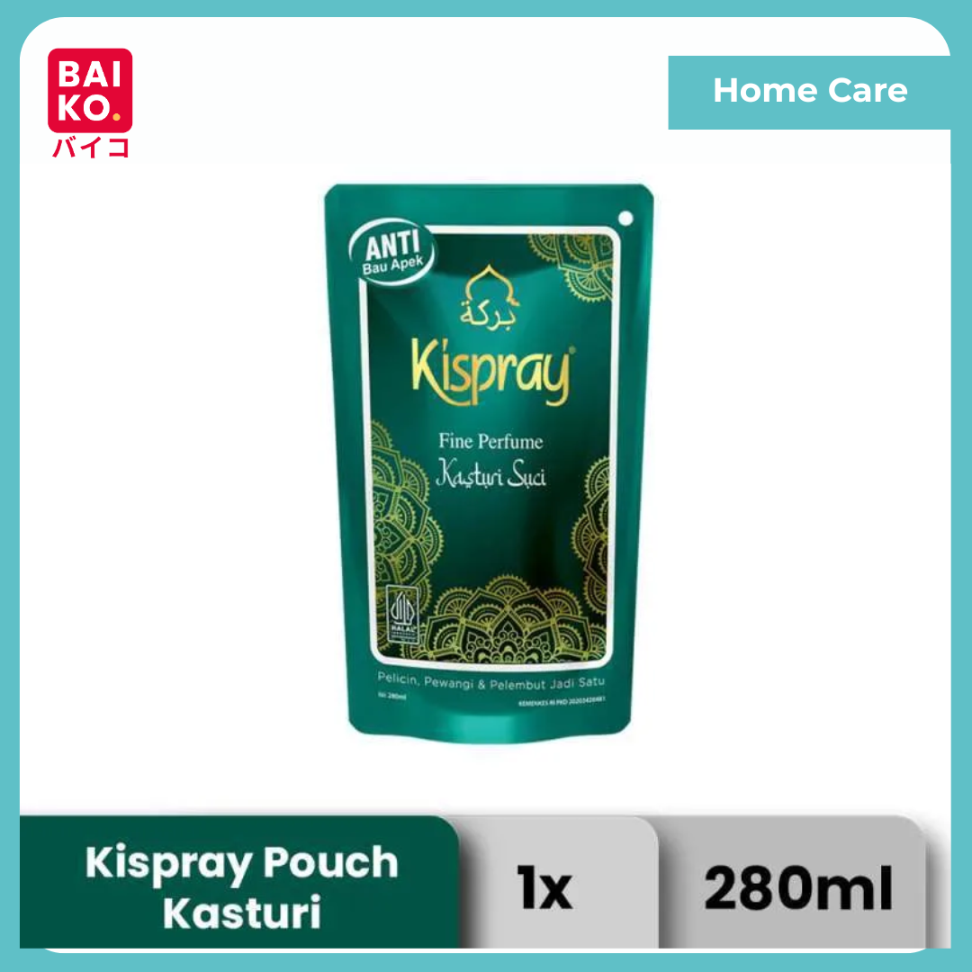 KISPRAY KASTURI POUCH 280 ML - Pelicin, Pelembut, Pewangi Pakaian Kispray adalah produk Ironing Aid (cairan setrika) yang memberikan keharuman tahan lama pada pakaian dan memudahkan proses menyetrika pakaian Anda. Dengan formula 3-in-1 (pelicin, pewangi, dan pelembut), pakaian menjadi cepat licin saat disetrika, memberikan keharuman yang tahan lama, dan membuat kain menjadi lembut/tidak kasar. Pakaian pun lebih harum mewangi dan tampak lebih rapi. Keunggulan: - Kispray mengandung bahan aktif antikuman Alkyldimethylbenzylammonium Chloride (ADBAC) yang efektif membunuh kuman penyebab bau apek dan mencegah tumbuhnya jamur pada pakaian - Kispray lebih hemat karena tersedia dalam kemasan sachet yang hanya perlu ditambahkan air dan tinggal disemprot saat setrika, sehingga parfum langsung terserap oleh kain - Kispray lebih praktis karena tersedia juga dalam kemasan refill pouch yang dapat langsung digunakan *Penting! Produk aerosol hanya dapat dikirimkan JABODETABEK atau pengantaran melalui JALUR DARAT Diwajibkan pembeli merekam video saat pembukaan paket. Tanpa adanya bukti video, akan sangat sulit untuk kami memproses keluhan Anda